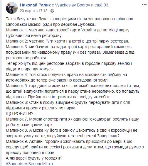 Ралик призывает небезраличных горожан прийти на ближайшую сессию запорожского городского совета, чтобы высказать протест. Отметим, сессия запланирована на среду, 27 марта.