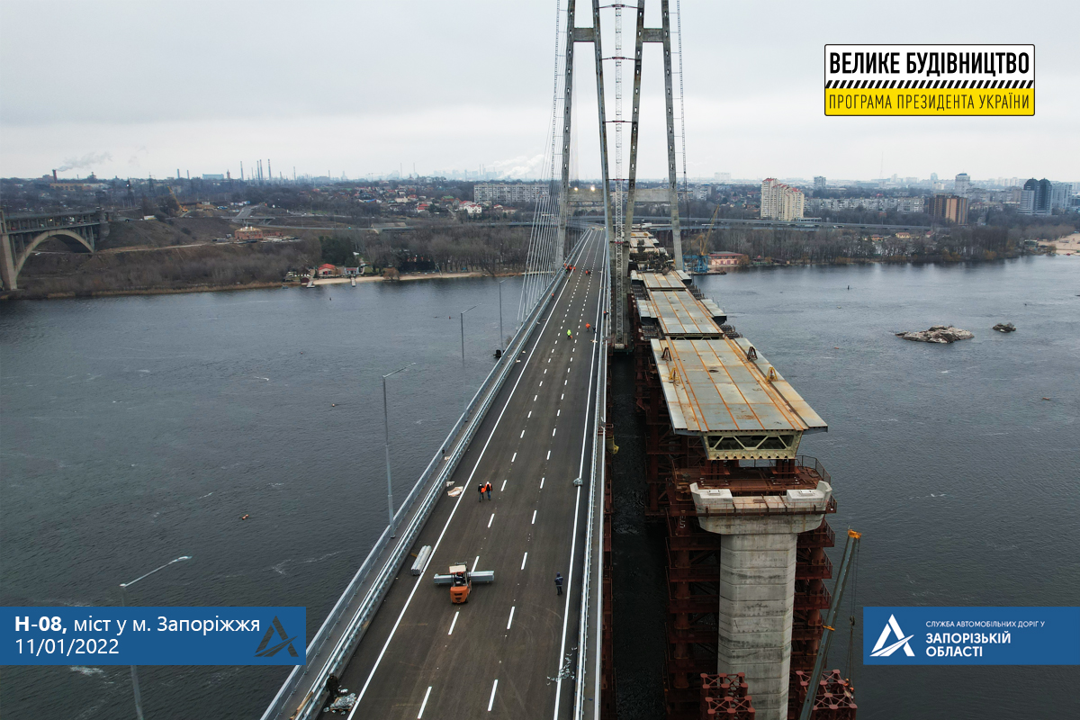 Открытие движения автотранспорта по новому вантовому мосту через Днепр в Запорожья запланировано на 22 января – День Соборности Украины.