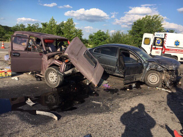 Сегодня, 16 июня в Запорожье около 18:00 на выезде из города по ул. Скворцова столкнулось 2 легковых автомобиля Нива и Фольксваген Пассат. Удар был такой силы, что части машин были смяты и разбросаны по дороге.