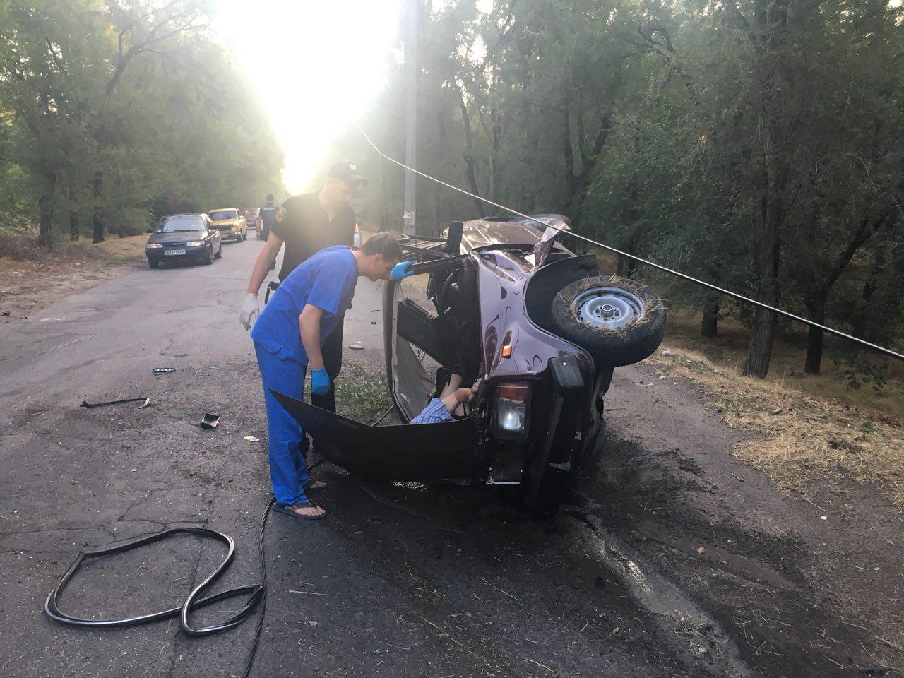 В Запорожье пьяный водитель влетел в электроопору: авто перевернулось, мужчина в больнице (ФОТО)