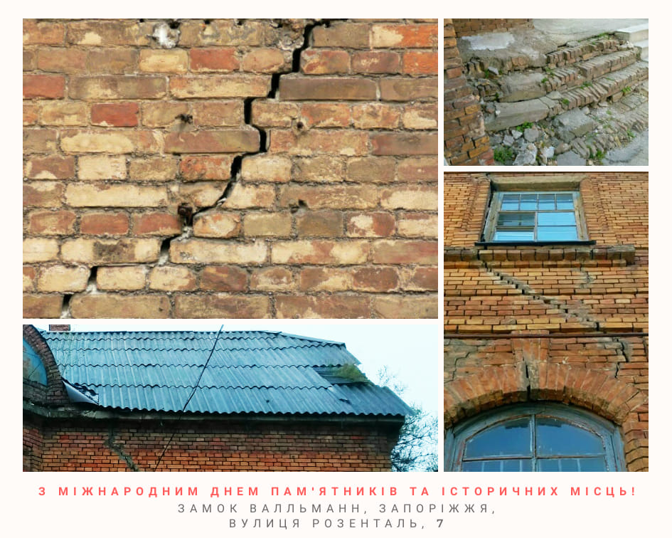 “С международным днем памятников и исторических мест, Константин Брыль, Володимир Буряк, Мороко Влад и Arthur Seredin! На праздничной открытке для вас – памятник, Замок Валльман на улице Розенталь в Запорожье, вполне себе полноправный представитель областного списка объектов культурного наследия. Он не то что требует вашего внимания, он о нём уже кричит”, – обратился краевед к власти.
