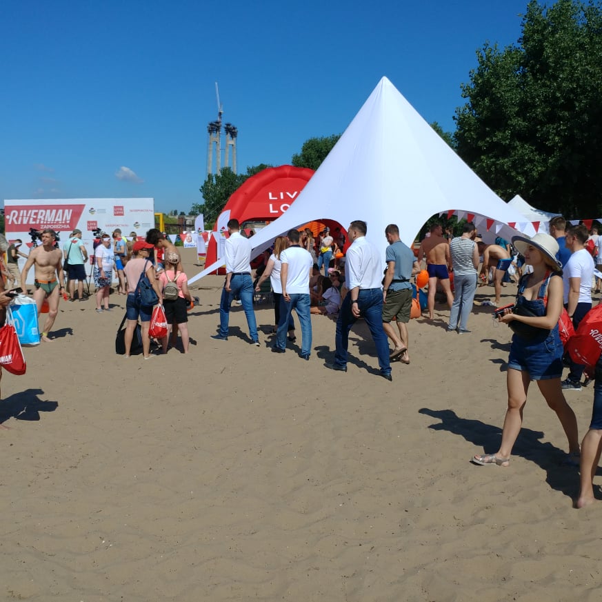 На центральном пляже Запорожья для горожан по случаю соревнований была организована зона отдыха.