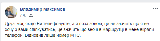 Неприятный случай в маршрутке произошел с депутатом Запоржского горсовета Владимиром Максимовым. Как написал вчера народный избранник в Фейсбук, у него в маршрутке украли телефон, и потому кто не может к нему дозвониться не переживали. Он просто еще не успел восстановить все номера.