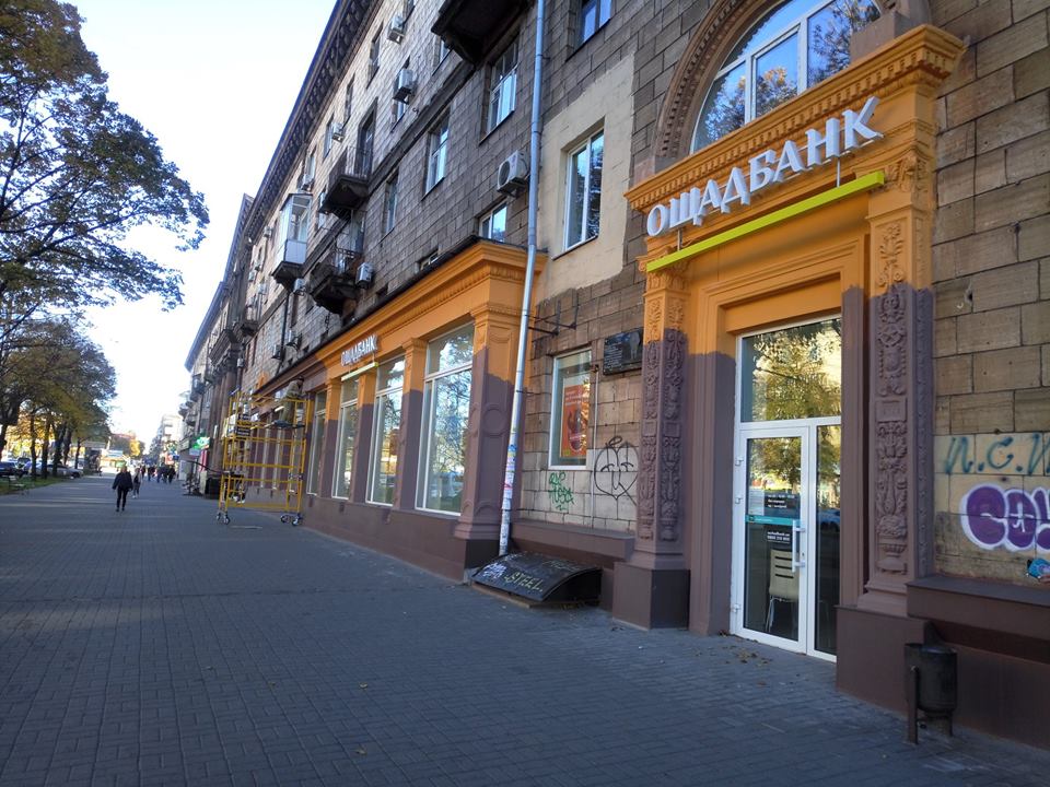 В Запорожье управление отделением Ощадбанка, прислушавшись к критике, решило перекрасить фасад (ФОТО)