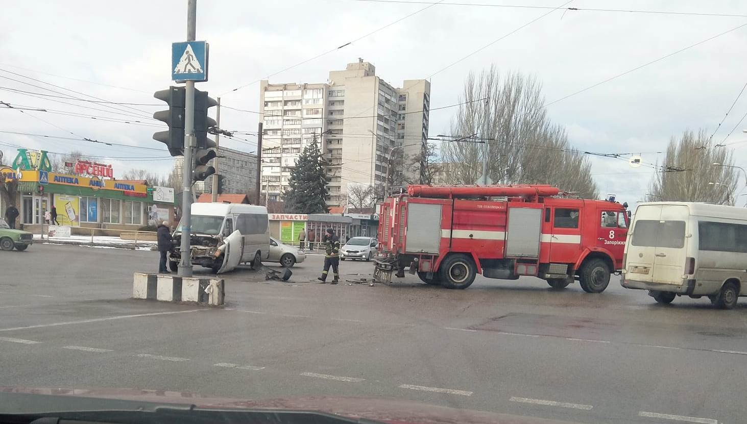 В Запорожье в ДТП на Космосе попала еще одна маршрутка: фотофакт