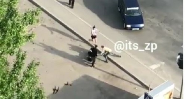 В Запорожье в центре Космоса утром на улице палками избили мужчину (ВИДЕО)
