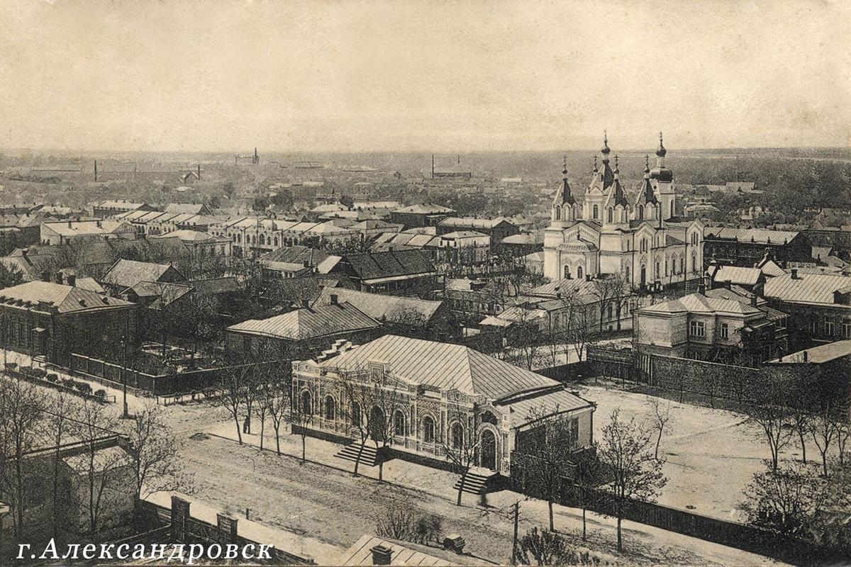 Лавка в 1917-1918 годов принадлежала Александровском купцу Абраму Моисеевичу Геншафту. Торговые ряды на Базарной площади Старого Александровска располагались на месте современного сквера Пионеров в 1874-1905 и 1911-1943 годах.