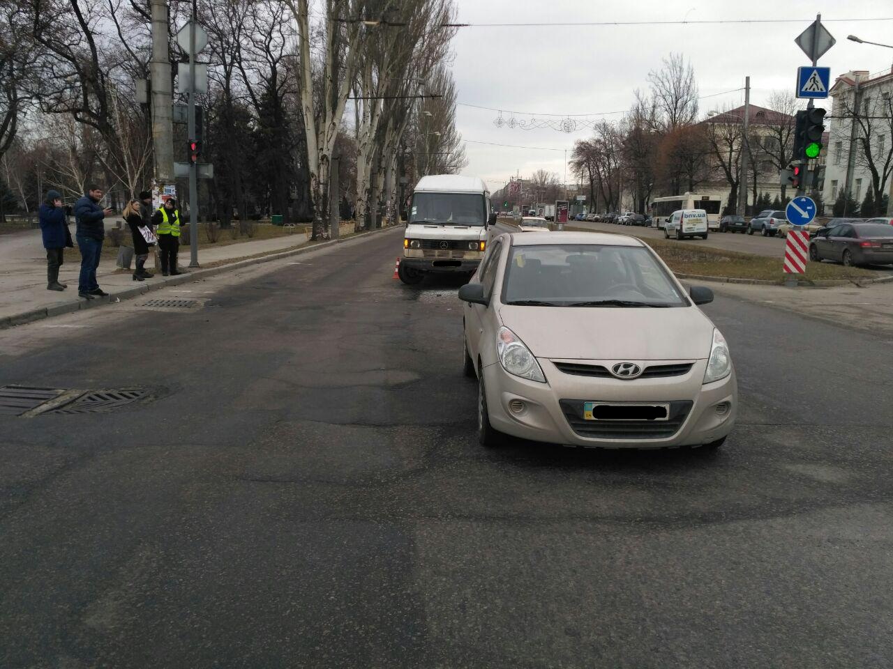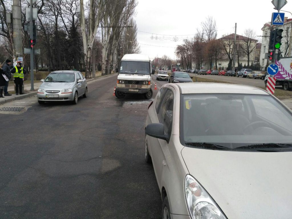 В Запорожье возле площади Свободы микроавтобус врезался в легковушку (ФОТО)