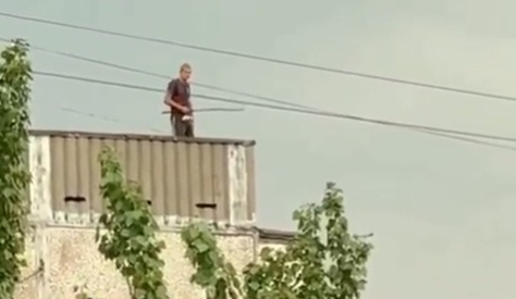 В Запорожье заметили странного парня с удочкой на… крыше многоэтажки (ВИДЕО)