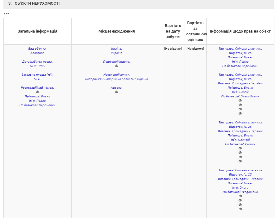 Отметим, согласно электронной декларации у семьи Бланков есть собственная квартира в Запорожье общей площадью 68 кв.м.