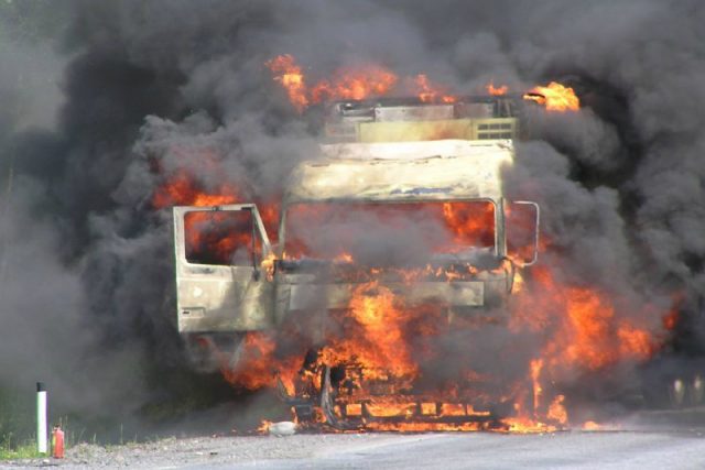 В Запорожской области на трассе сгорела фура: водитель сам боролся с огнем (ВИДЕО)