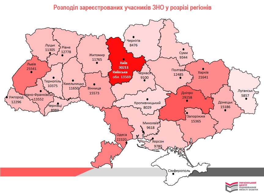 Об этом сообщается на сайте Украинского центра оценивания качества образования. Всего по Украине зарегистрировалось 354 051 абитуриентов.
