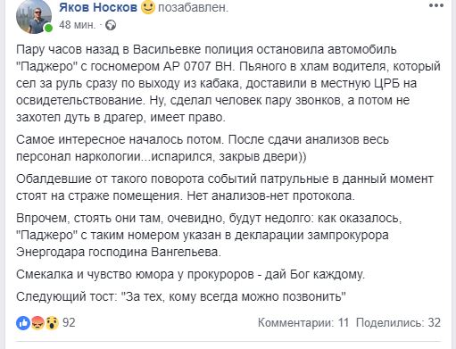 В Запорожской области полиция остановила авто с пьяным прокурором, – журналист