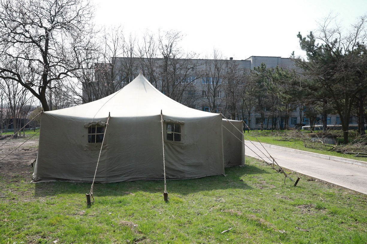 Вчера, 31 марта, возле Днепрорудненской больницы появилась одна из первых скрининговых палаток.