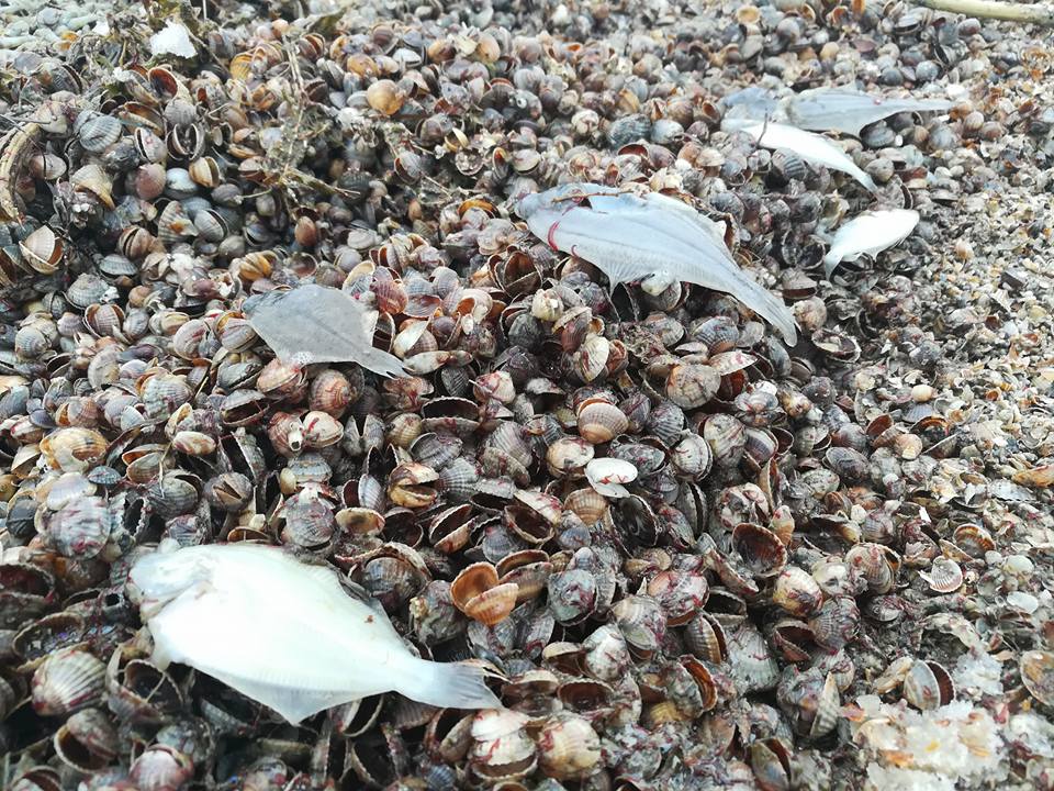 Запорожская журналистка Ольга Звонарева на своей странице написала, что по всему побережью лимана лежит дохлая рыба: камбала и ее мальки.