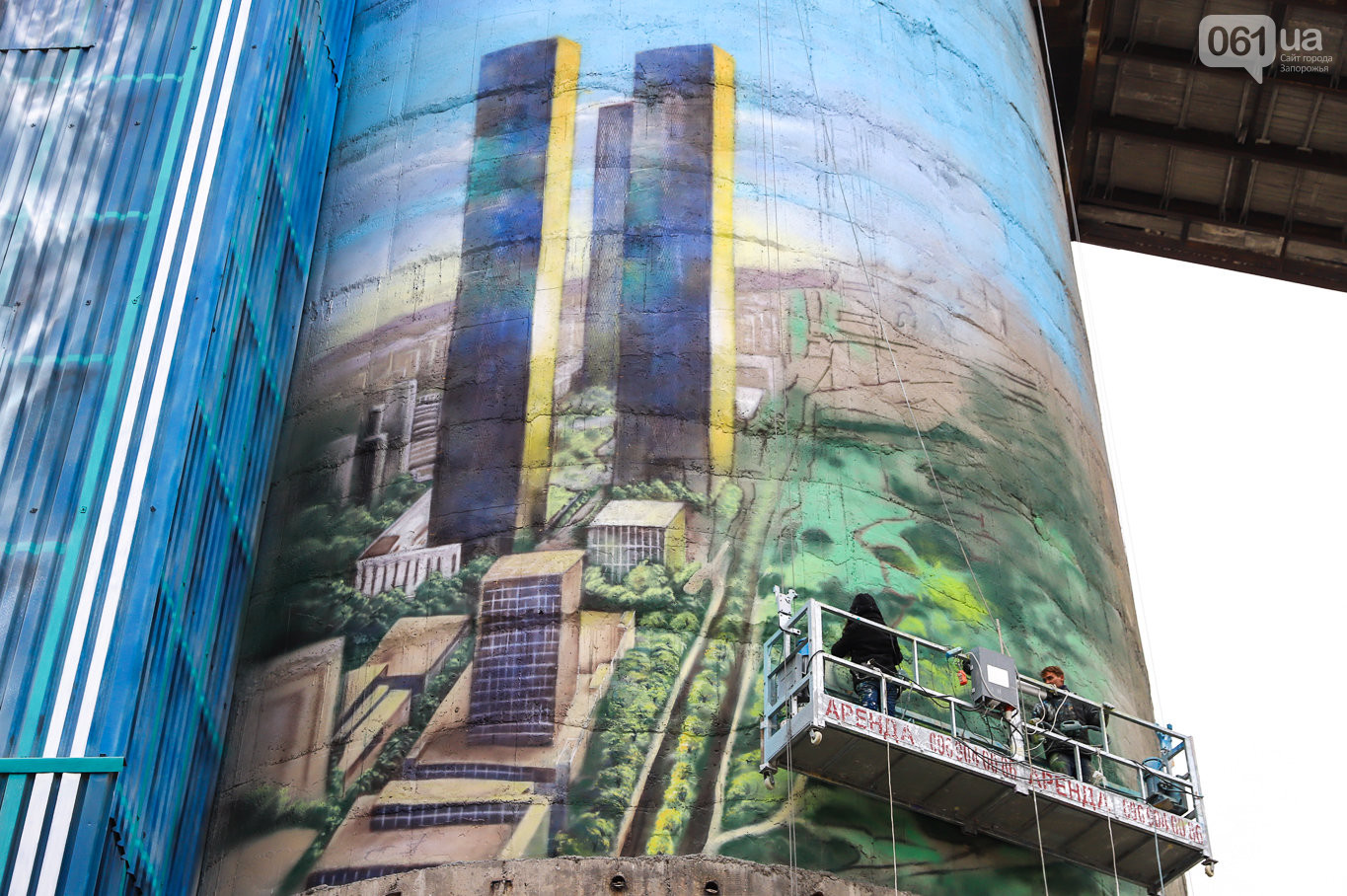 «Это самый большой в Украине мурал, нарисованный на промышленном объекте. Думаем, это будет рекорд Украины. Площадь точно не стандартная. Мы раньше рисовали на плоских поверхностях, а тут — новый вызов для нас. Мы проверили свои силы и у нас получилось», – говорит организатор проекта Максим Кравчук.