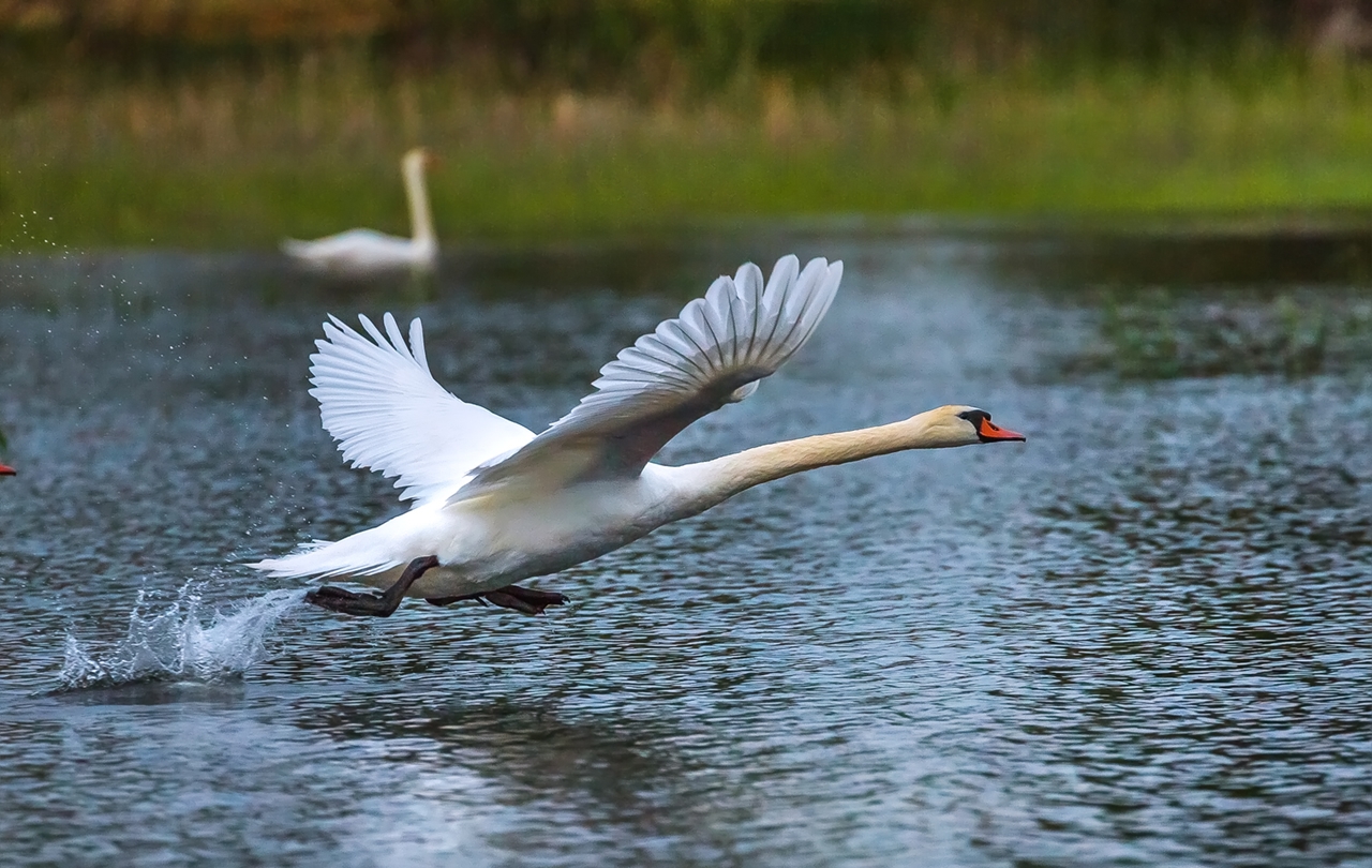 В Запорожской области жители одного из поселков запечатлели лебедей, которые прилетели к местному озеру