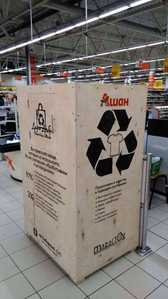 В гипермаркете «Ашан» в эти выходные установили уже третий в Запорожье благотворительный бокс для вещей