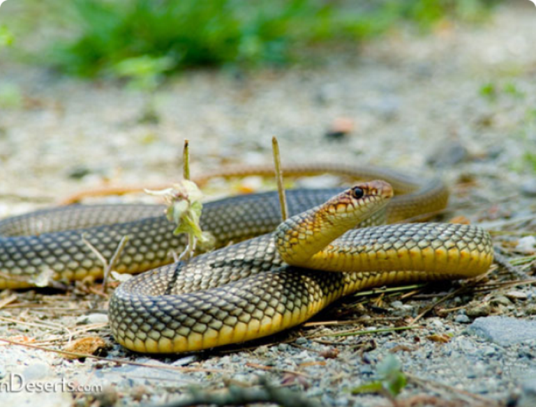 Желтобрюхий полоз, не ядовитый вид змеи, оказался в подъезде дома по улице Звенигородской, на 4-м этаже.
