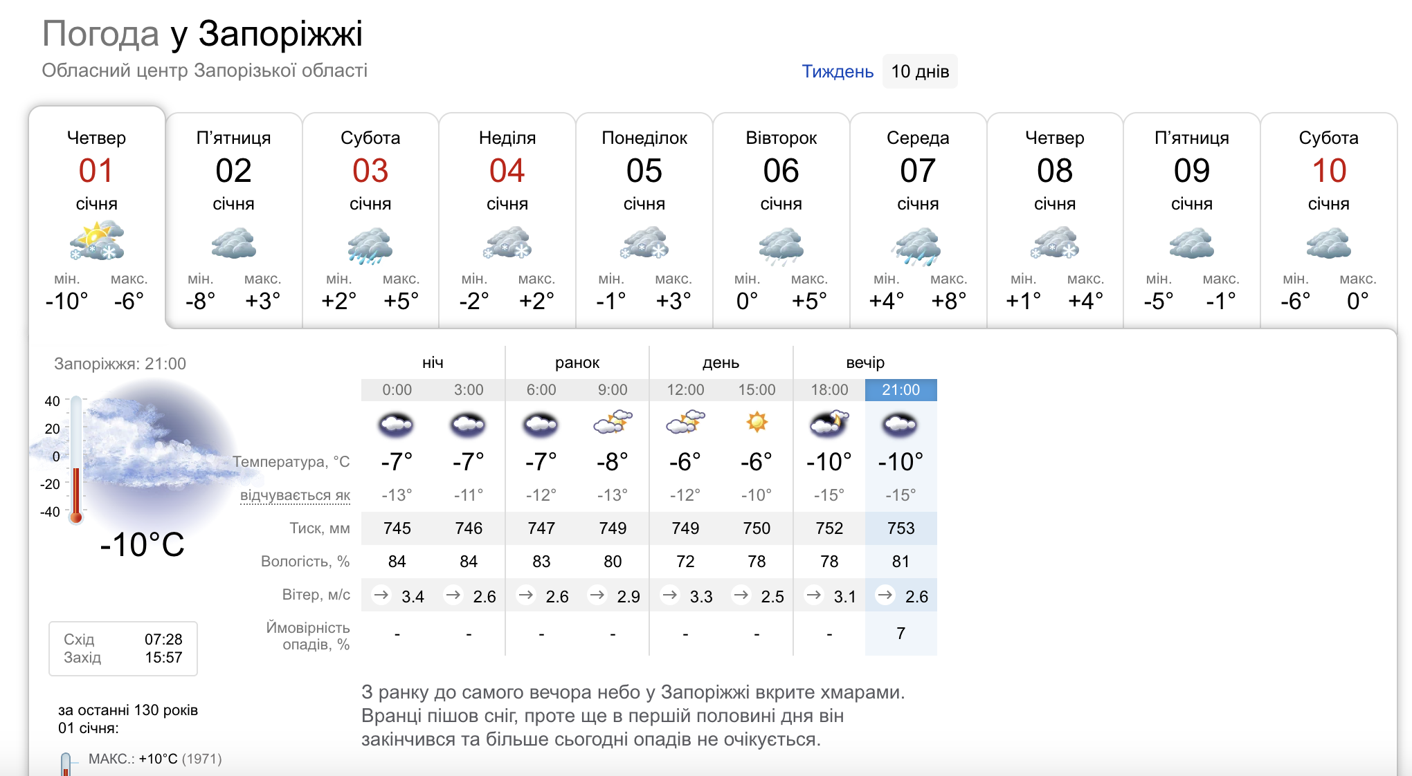 Метеорологи зазначають: такі температурні «гойдалки» для Запоріжжя небезпечні різкими перепадами. Після нічних мінусів на дорогах можливе утворення ожеледиці, а вдень — тумани та підвищена вологість.