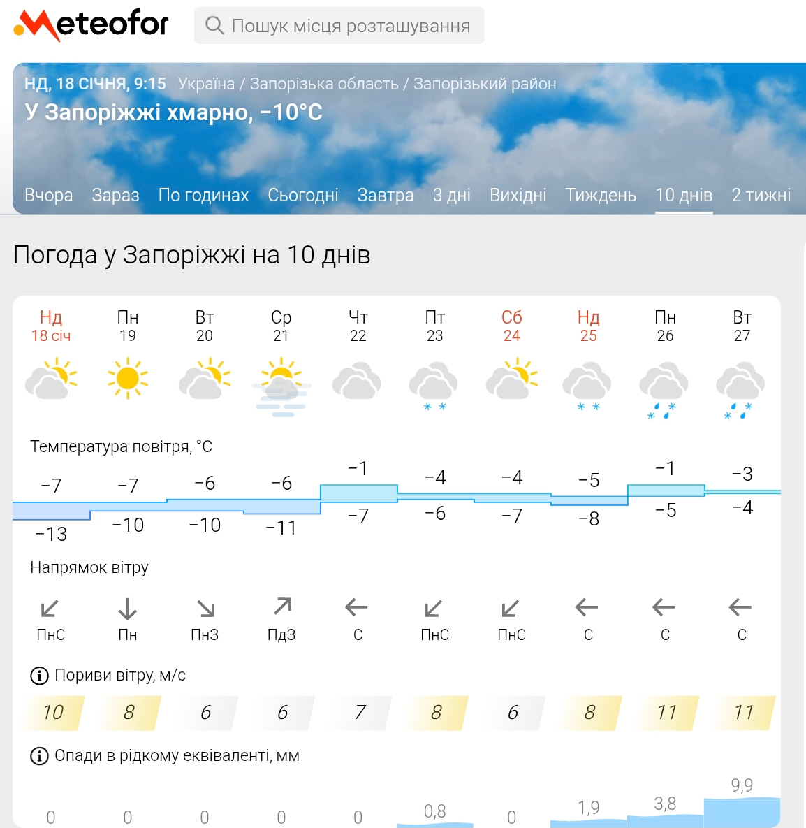 Найголовніше питання для містян — коли мороз почне слабшати. Згідно з прогнозами одразу двох сервісів, більш відчутне потепління варто очікувати ближче до кінця січня.