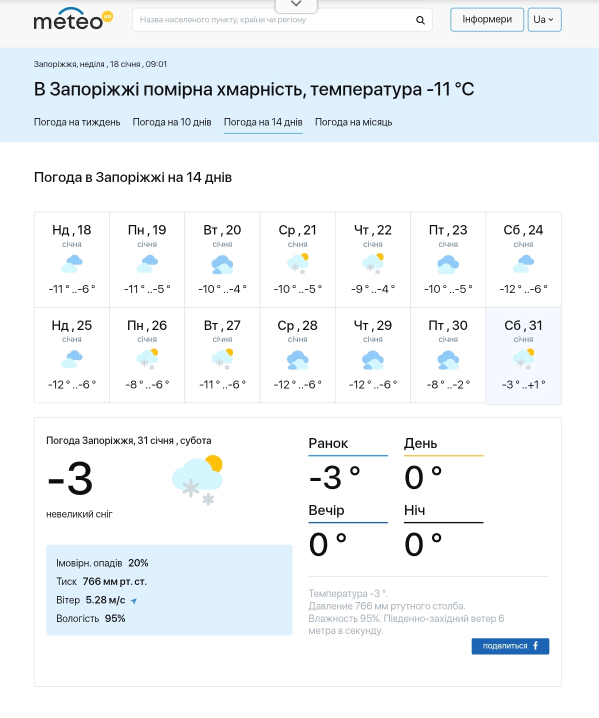 - найтепліше — 30–31 січня, коли вдень очікується близько 0°C і навіть до +1°C