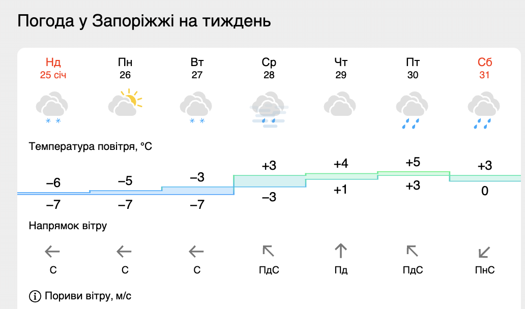 У понеділок та вівторок, 26–27 січня, в Запоріжжі збережеться зимовий характер погоди.