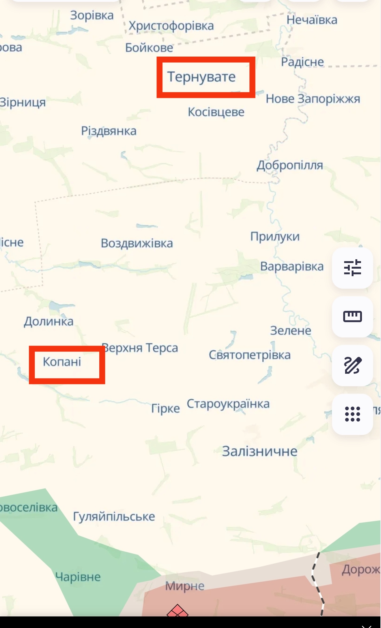 Лінія фронту в Запорізькій області (КАРТА)