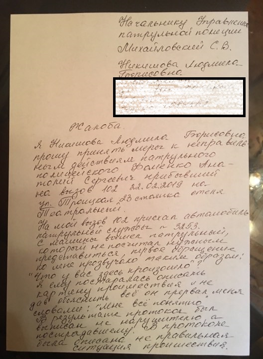 Женщина подала жалобу на полицейского на имя начальника патрульной полиции Запорожской области Светланы Михайловской.