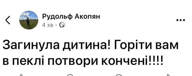 У свою чергу волонтер та відомий громадський діяч Рудольф Акопян повідомляє, що також загинула дитина…
