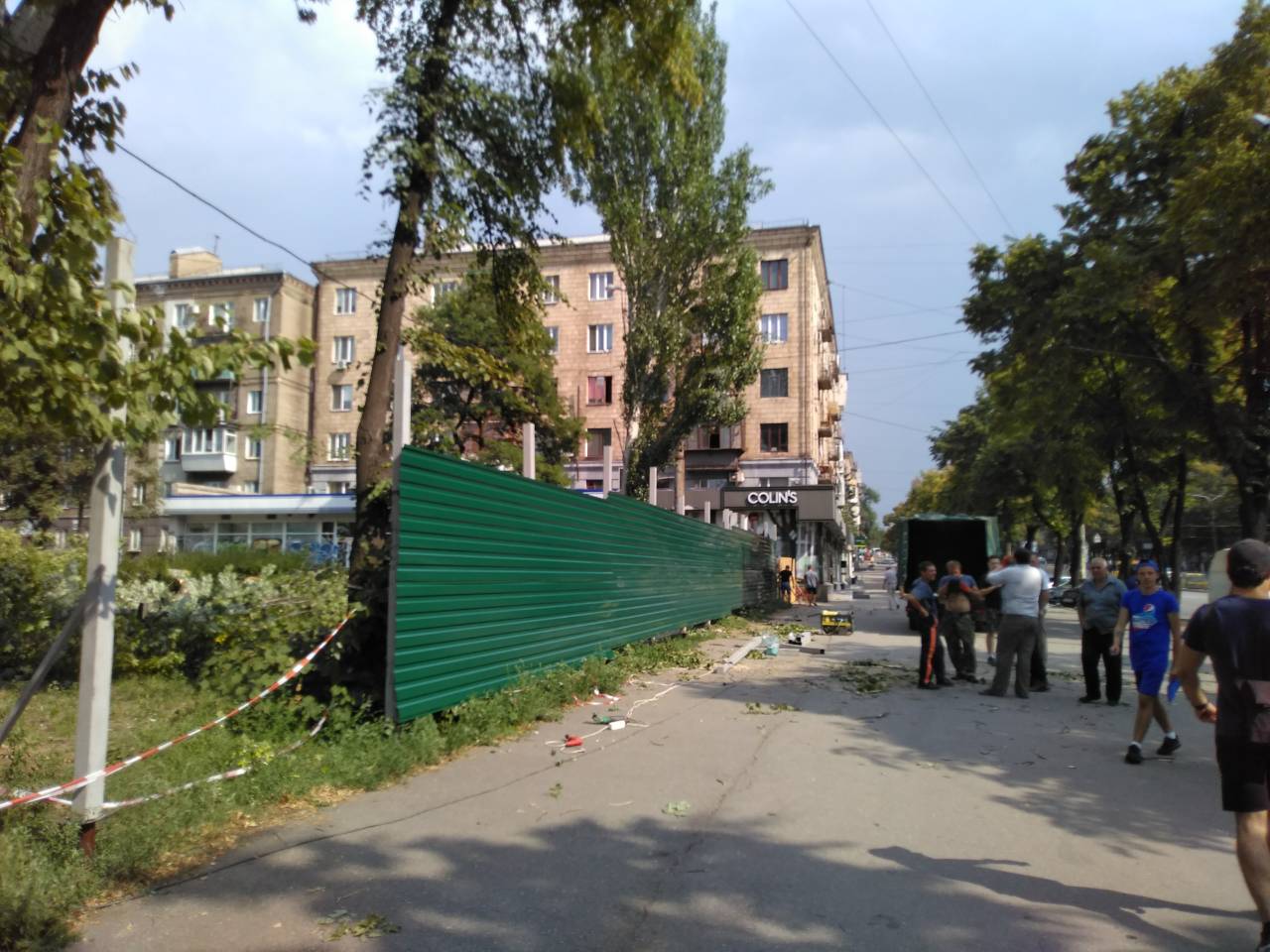 В Запорожье начали возводить ограждение вокруг сквера Яланского, где сегодня началась вырубка деревьев предшествующая старту строительства ТРЦ.