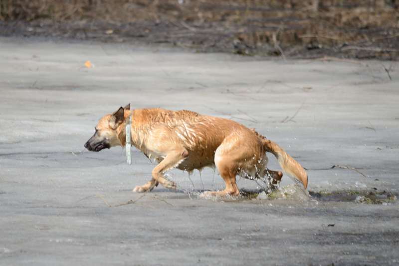Видео появилось в сети 28 января. На нем молодой человек продвигается ползком по льду к проруби, куда провалилась собака. Добравшись до нее, парень протягивает животному хоккейную клюшку. Собака не растерялась и схватила ее зубами, благодаря чему ей и удалось выбраться из воды.