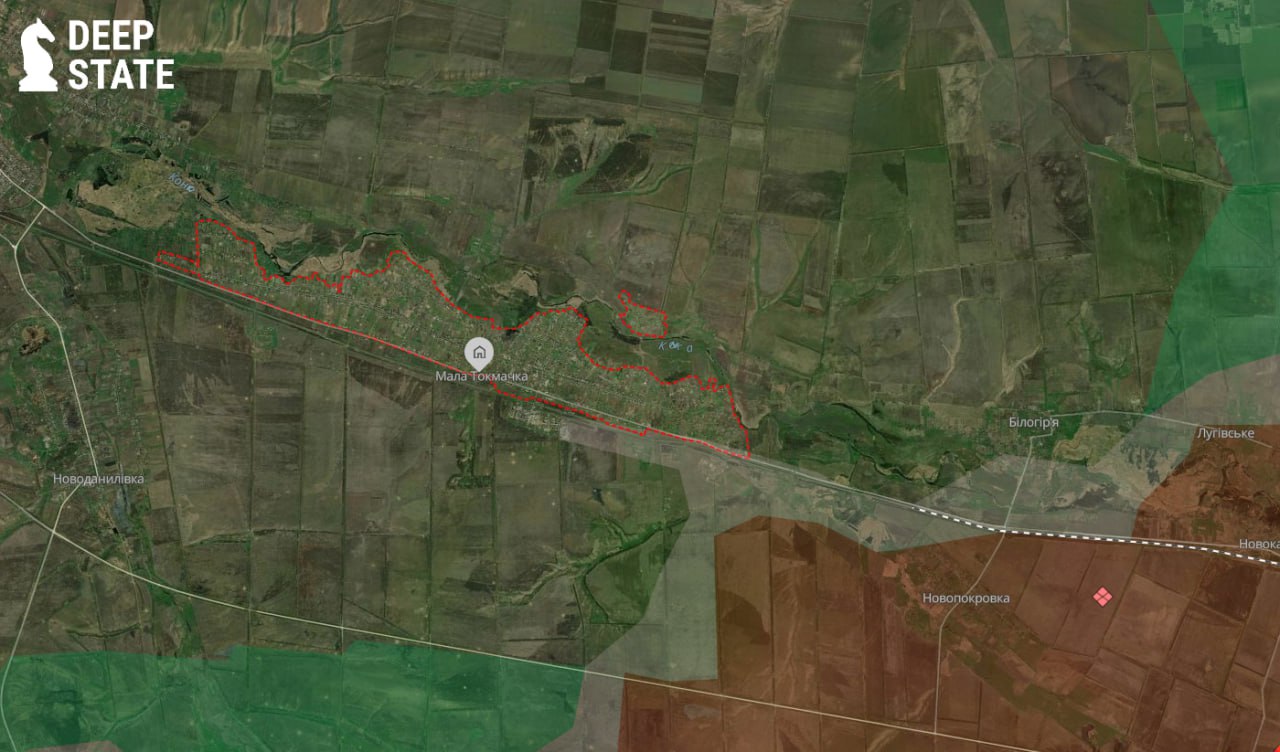 За повідомленням DeepState, на оновленій карті видно появу сірої зони навколо Малої Токмачки. Минулого місяця ворог намагався прорватися тут, задіявши значну кількість техніки.