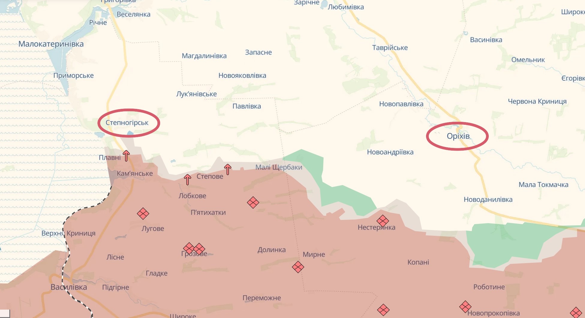 Оріхівський напрямок. Російські штурмові групи намагалися просунутися у напрямку Степногірська, але наші воїни зупинили їхній рух.