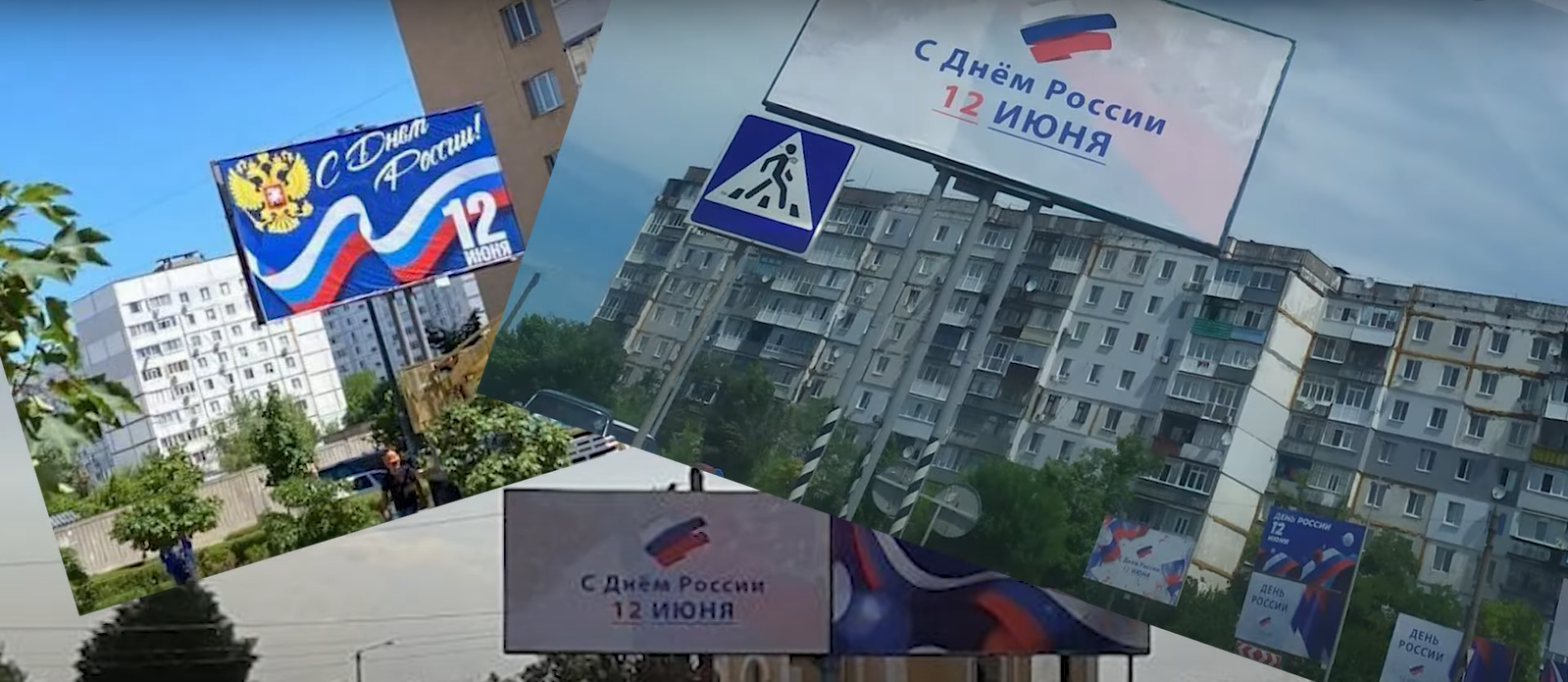 Чужинці планують святкувати день росії в українських містах під окупацією. Банерами спотворили Енергодар, Бердянськ і Мелітополь.