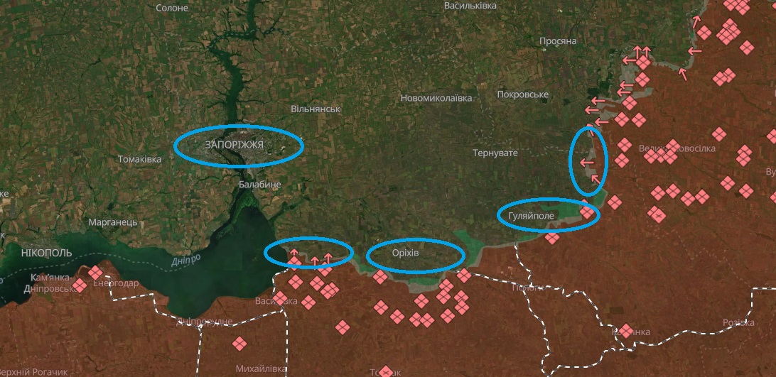 Водночас в напрямку самого м. Оріхова просування росіян не значні. Їм вдалося підійти трохи ближче до Новоданилівки та Малої Токмачки.