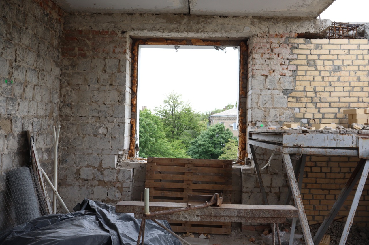 Керівник Служби відновлення та розвитку інфраструктури у Запорізькій області Олег Галич розповів, що прокладання цегляної кладки на одному поверсі триває декілька тижнів.