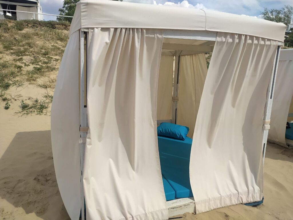 Для комфортного відпочинку на пляжі можна орендувати ліжак, або повноцінну зону з навісом. Оренда шезлонга обійдеться за ціною 300 гривень, віп-зона від 650 гривень. Також можна орендувати парасольку з 2-ма шезлонгами за ціною від 550 гривень. Альтанки коштують від 700 гривень, а котеджі від 4000 гривень за двох.