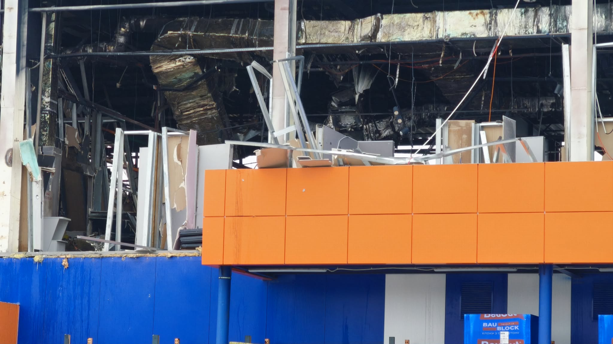 - всередині приміщення видно знищені торгові зони, обладнання та стелажі;