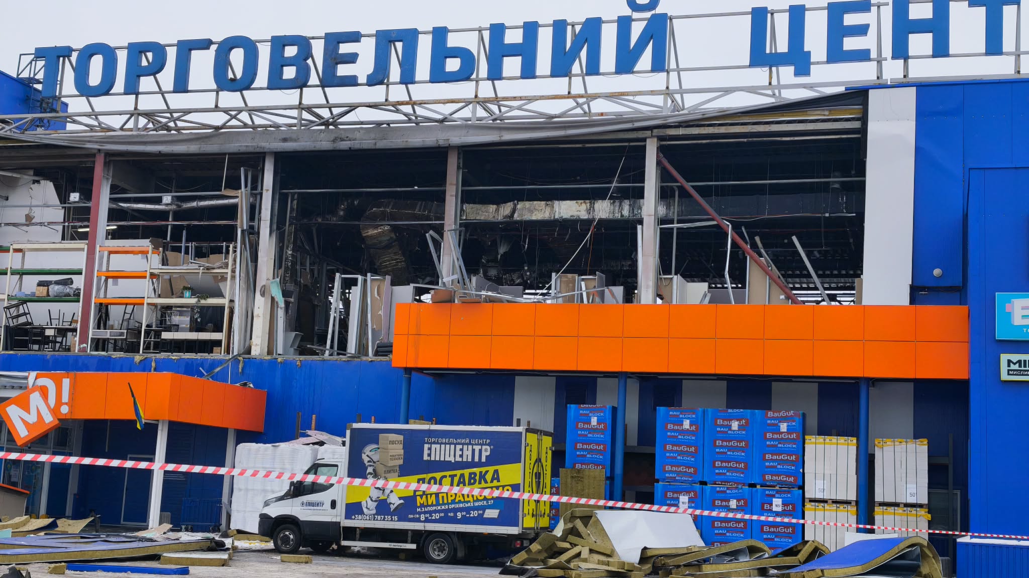 Як зранку виглядає «Епіцентр» у Запоріжжі після ворожого удару (ФОТО, ВІДЕО)
