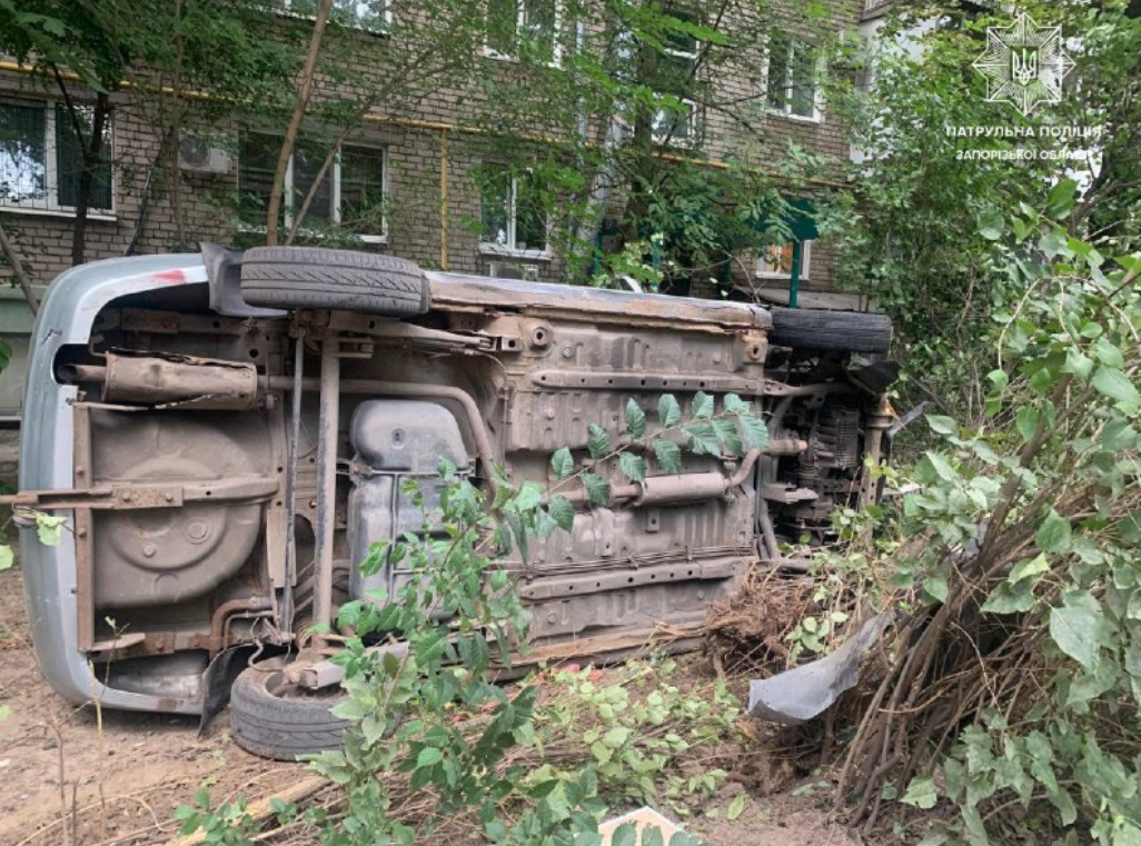 Того ж дня 24-річний водій у нетверезому стані, без права на керування транспортним засобом та чинного страхового поліса на автівку спровокував ДТП у Космічному мікрорайоні Запоріжжя – на вулиці Європейській. Як повідомляв Акцент 16 серпня, прибувши на місце події інспектори виявили перекинутий автомобіль Chery Jaggi.