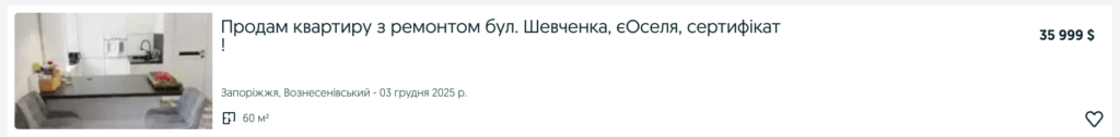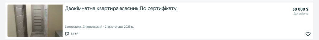 У більшості оголошень прямо вказано: єОселя, сертифікат, можна під держпрограми. Це означає, що продавці готові входити у тривалі й формалізовані процедури – попит великий.