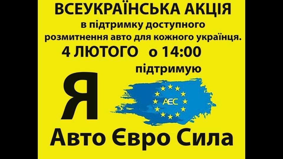 4 февраля состоится всеукраинская акция – автопробег за доступные автомобили для украинцев. Организатором выступают активисты “Авто Евро Сила”.
