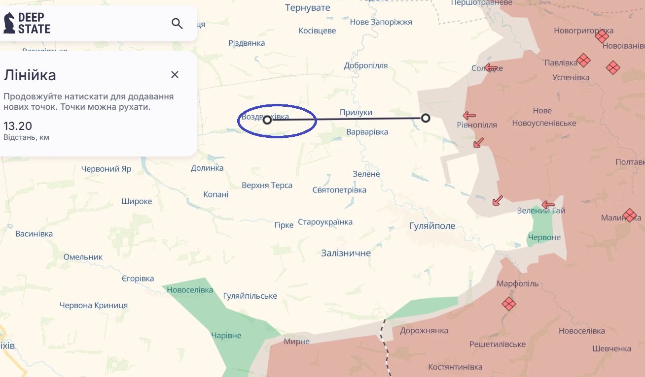 Воздвижівка знаходиться приблизно в 13-15 км від лінії фронту, зараз ворог просувається в бік населеного пункту зі сходу, вже підходячи до траси Гуляйполе – Покровське.