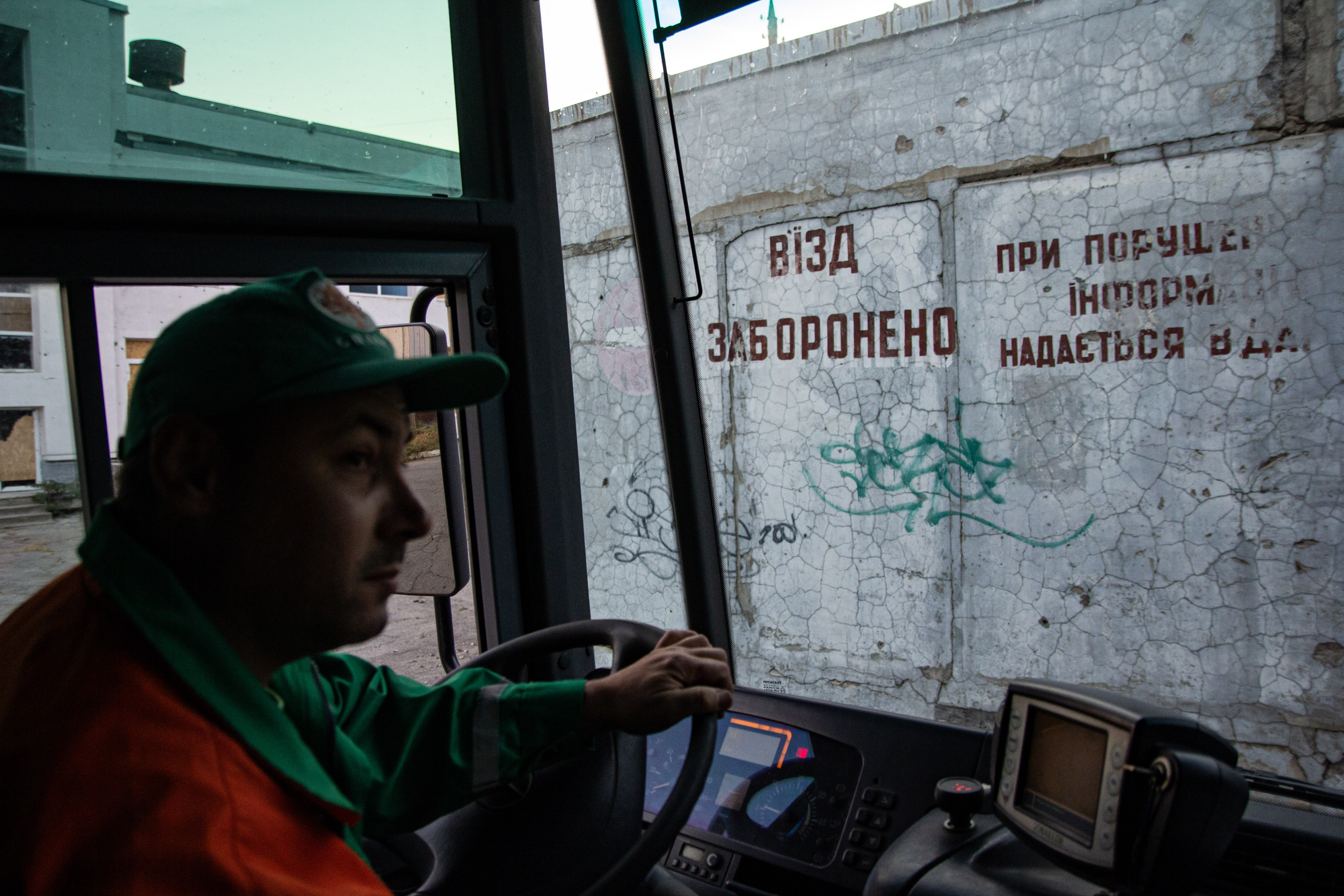 Перші хвилини у Степногірську. Чоловіки, роздивляючись дорогу з вікон, постійно відмічають кількість нових руйнувань, які з’явилися протягом місяця їхньої відсутності. Тут варто зазначити, що кожен екіпаж “Гранік” виходить на цей маршрут по черзі, як і на інші маршрути. У підсумку- десь раз на місяць кожен працівник виконує обов’язки у зоні потенційних артобстрілів.