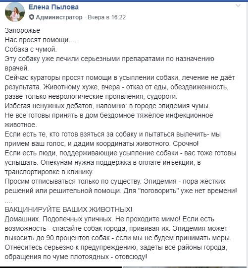 Домашних. Подопечных уличных. Не проходите мимо! Если есть возможность – спасайте собак города, прививая их. Эпидемия может выкосить до 90 процентов собак – если мы не будем принимать меры. Отнеситесь серьезно к предупреждению, задеты все районы города, обращения по чуме плотоядных – отовсюду”, – пишет Елена.