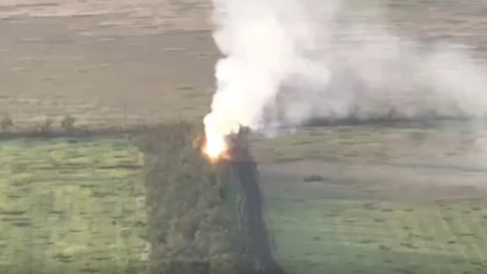 У першій частині відеозапису демонструються наслідки ударів по розташуванню складів боєкомплектів ворога в лісосмузі на одній з ділянок поля: внаслідок потужного “прильоту” склад продовжує догорати, а дим підіймається високо в небо.