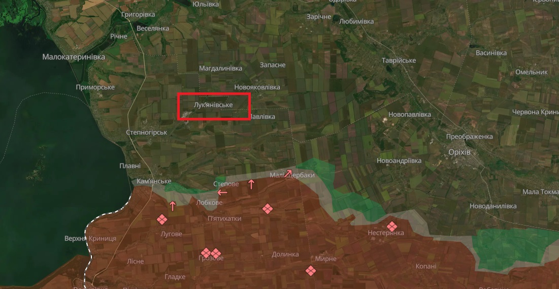 Зазначимо, Лук’янівське – новий населений пункт, що фіугурє у зведеннях Генштабу ЗСУ. Це означає про ймовірну втрату контролю над Степовим та уадарами росіян між Степовим та Щербаками на північ.
