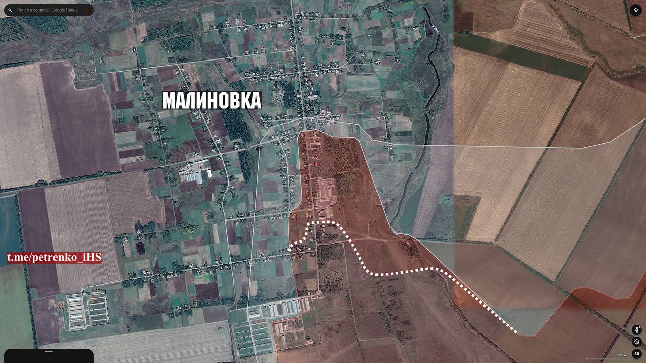 На Гуляйпільському напрямку, за словами Петренка, ворог просунувся в центр Малинівки, зокрема в район Свято-Введенського храму. Противник продовжує штурмові дії, залучаючи додаткові сили для спроби повного захоплення населеного пункту.