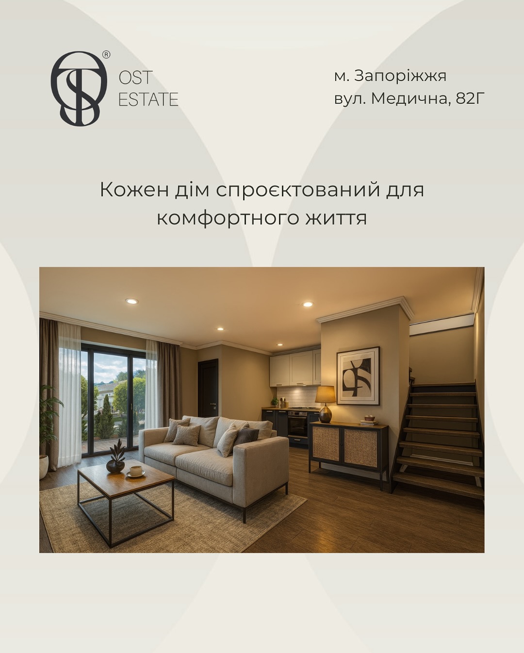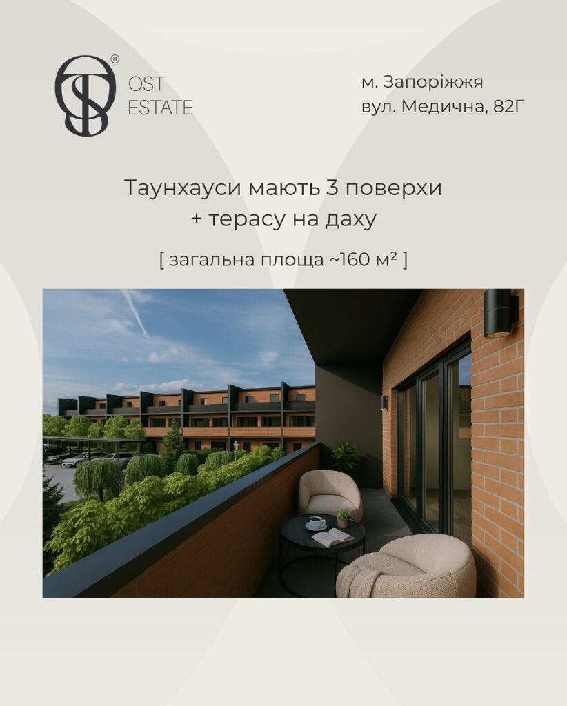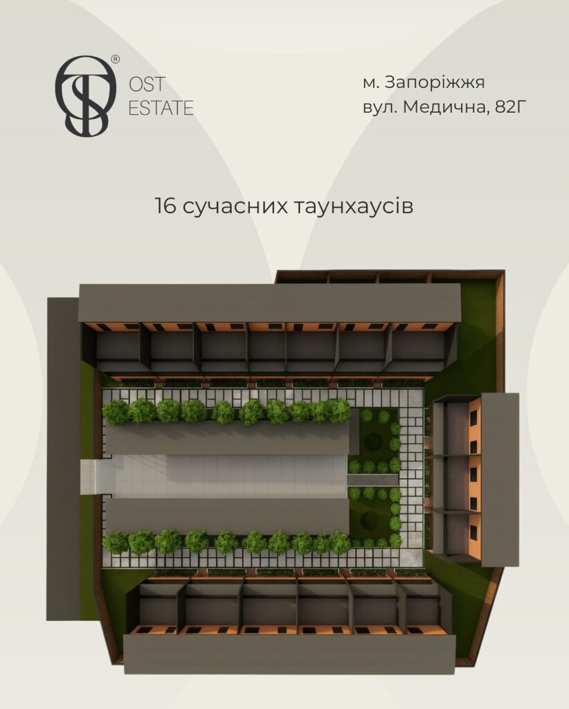 Так, компанія OST. ESTATE анонсувала проєкт OST.Town. Він передбачає будівництво 16 таунхаусів у Бородинському районі. Кожен будинок матиме три поверхи, терасу на даху, власний сад і паркомісце.